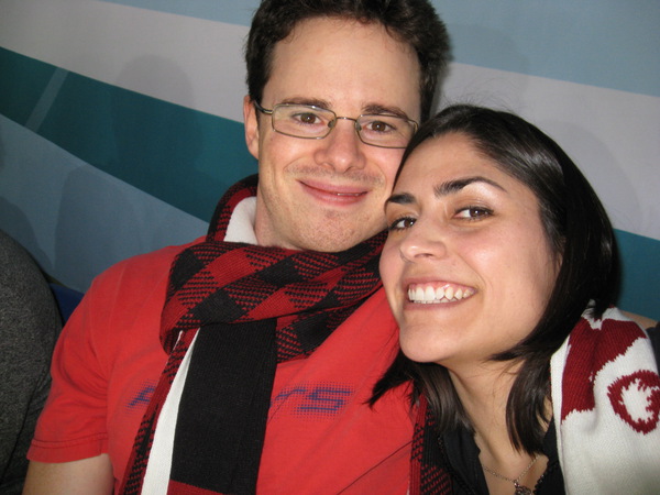 Selfie at one of the Olympic events. The conversation went, roughly, "Put on the scarf!" "I'm too warm!" "Put it on for the picture!"